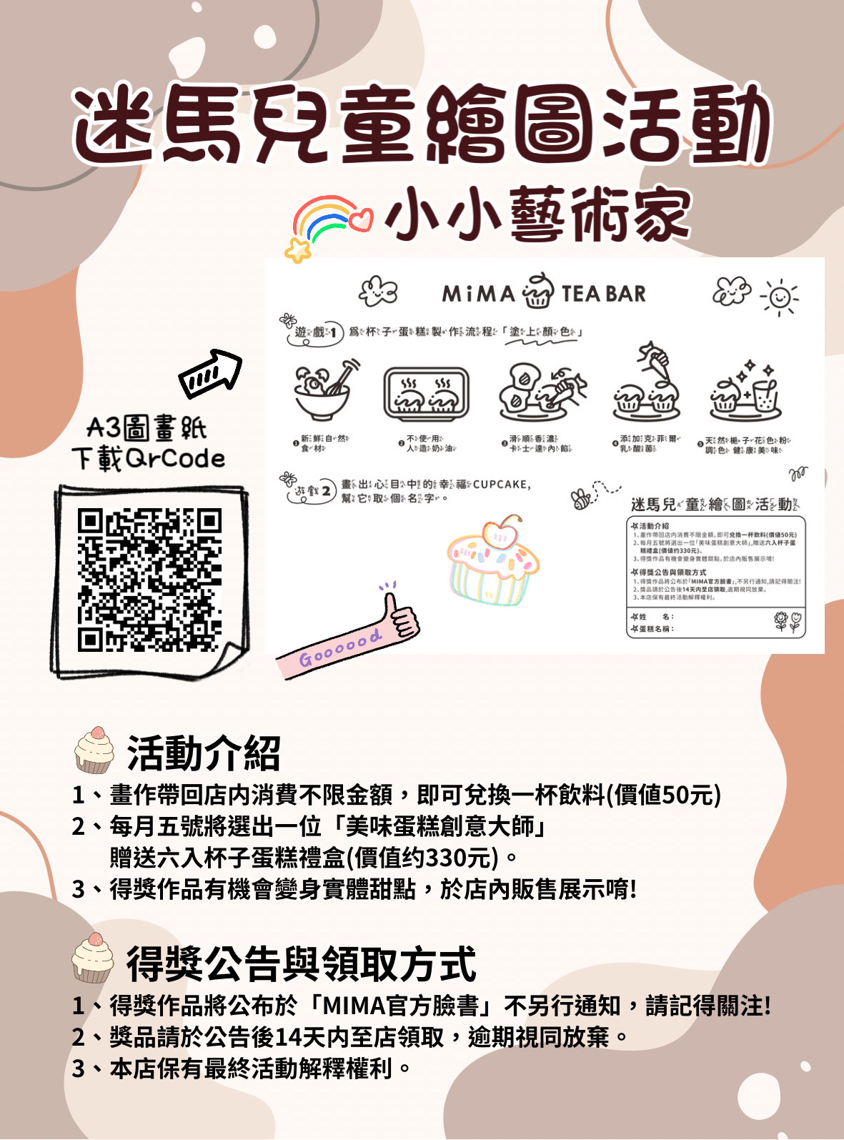 迷馬準備小小藝術家的比賽只要來店領取圖畫紙(或掃QRcode下載)