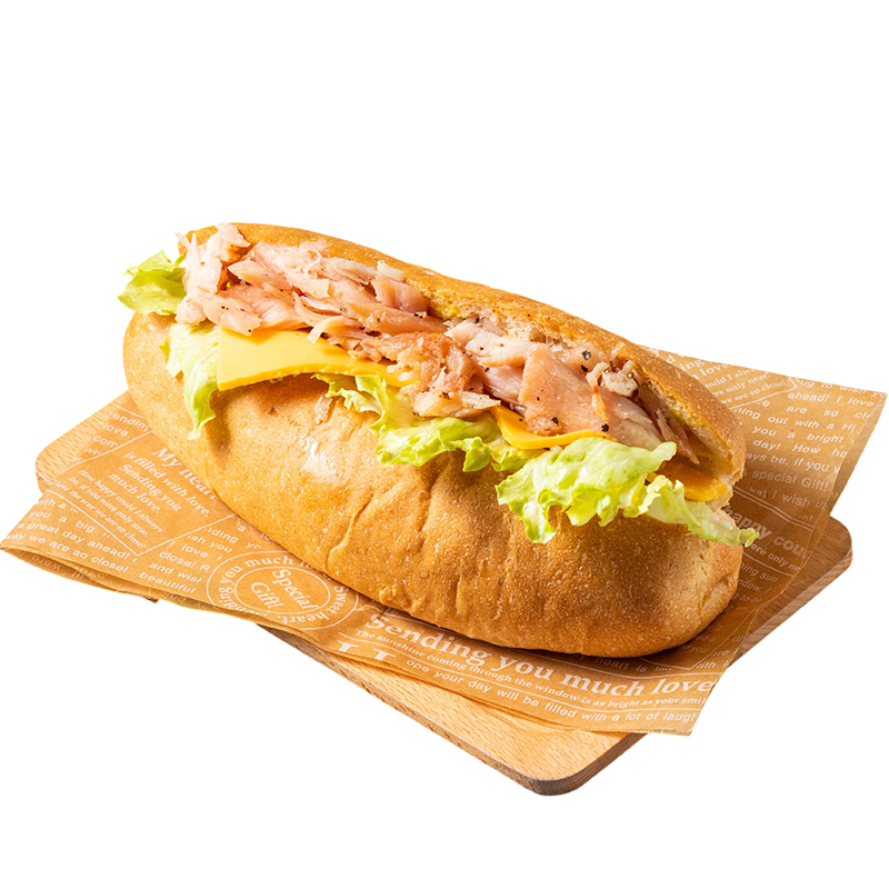 煙燻雞肉撒上黑胡椒與特製白胡椒提香,搭配融化起司與脆爽生菜,層次豐富不膩口,咬下去幸福感爆棚!