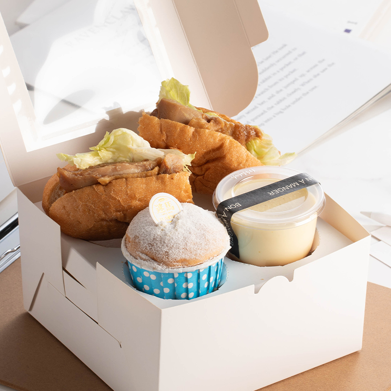 夾餡軟法餐包x1 + 杯子蛋糕x1 + 香草布丁x1